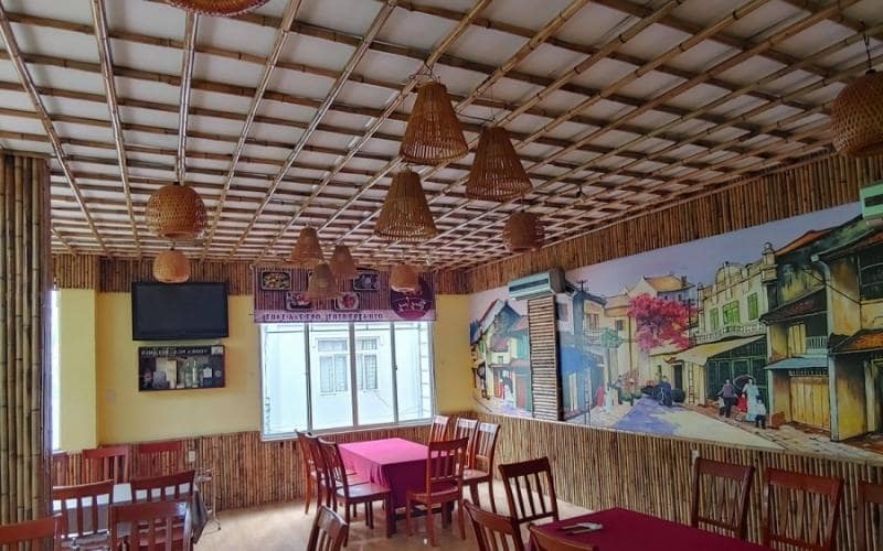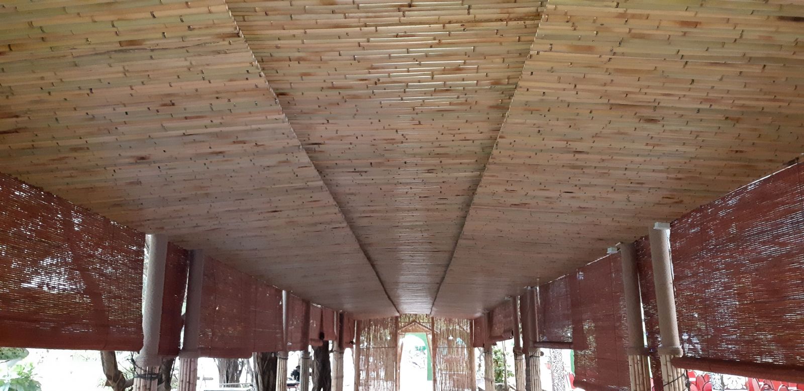 Trần nhà trang trí tre theo 2 lớp tạo thành chi tiết tô điểm độc đáo