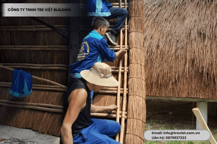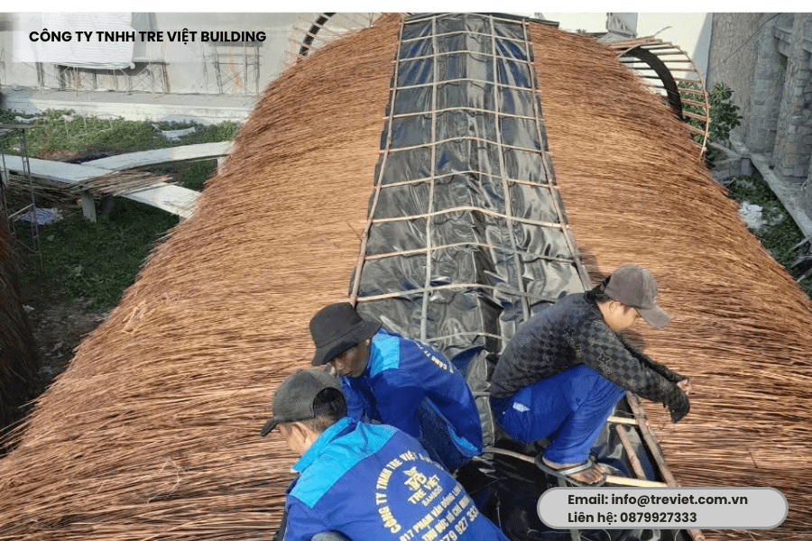 Quy trình thi công lợp mái lá (lợp guột ) tại Tre Việt Building